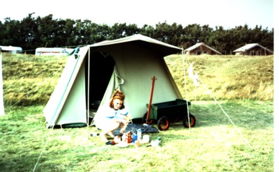 Goed, toen moest de tent nog opgezet worden….maar we hadden een mooie plek uitgekozen, namelijk naast een nog grotere tent met 5 jongens uit Friesland. Hun tent was net opgezet en het biertje was in zicht, maar ze waren erg behulpzaam. Het was nog een heel gedoe want ik geloof dat het zo'n beetje windkracht 6 was dus het ging alle kanten op.