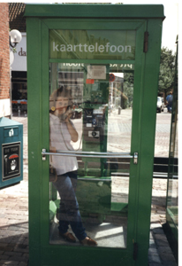 We zijn zo in de wolken, dat ik mijn portemonnee laat liggen boven in de telefooncel. Nee he!